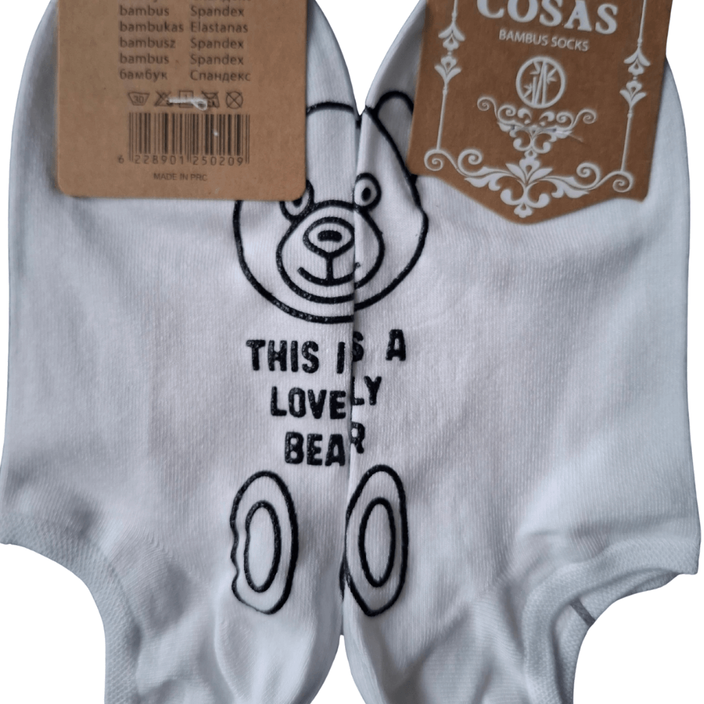 Bambusowe stopki damskie – białe „Lovely Bear” – zestaw 5 par