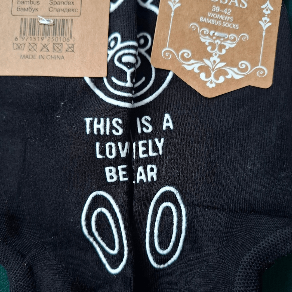 Bambusowe stopki damskie – czarne „Lovely Bear” – zestaw 5 par