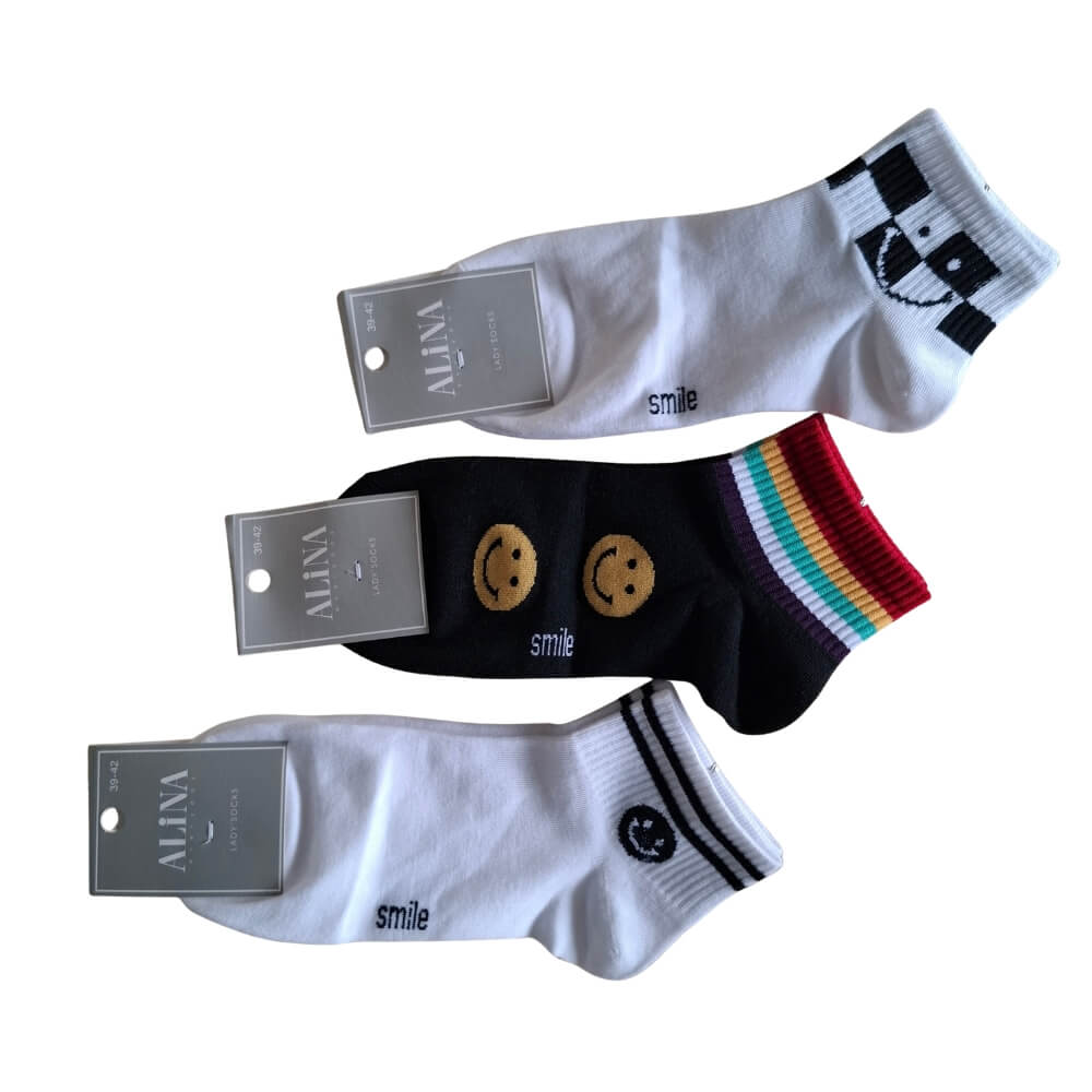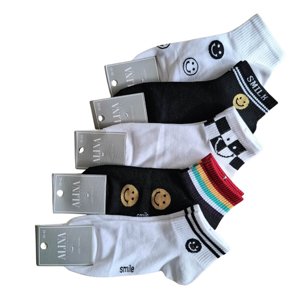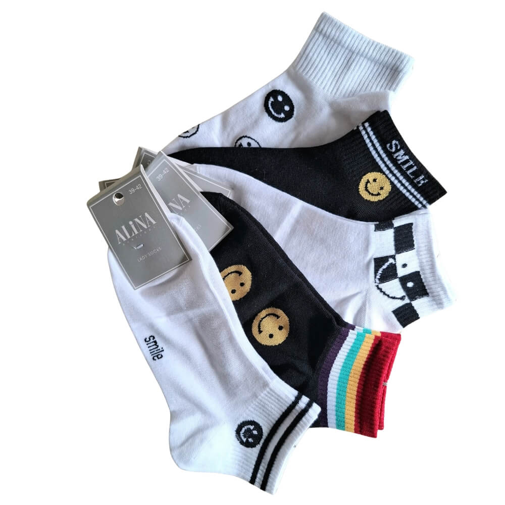 Damskie skarpetki stopki SMILE- 5-pak- bawełniane